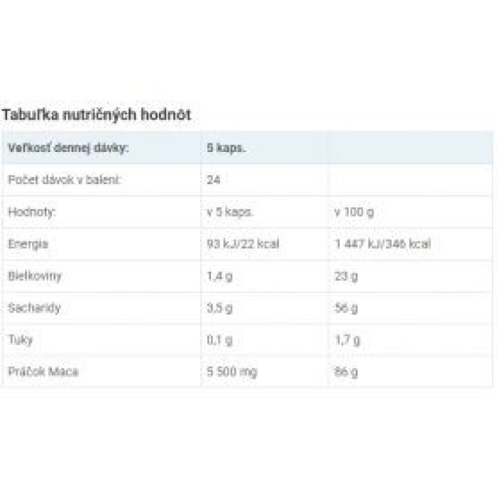Rôzne, v závislosti od výrobcu (napr. MacaPro, Maca Gold)